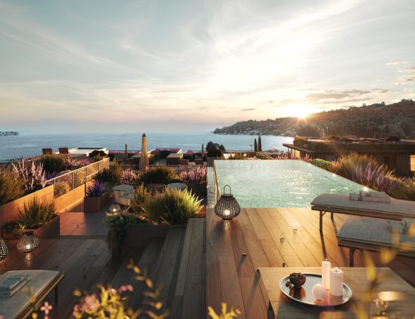 - Privát strand úszómedencékkel és napozóágyakkal.