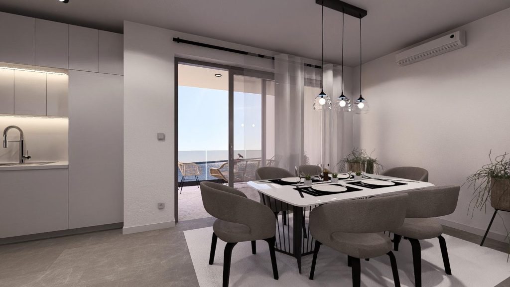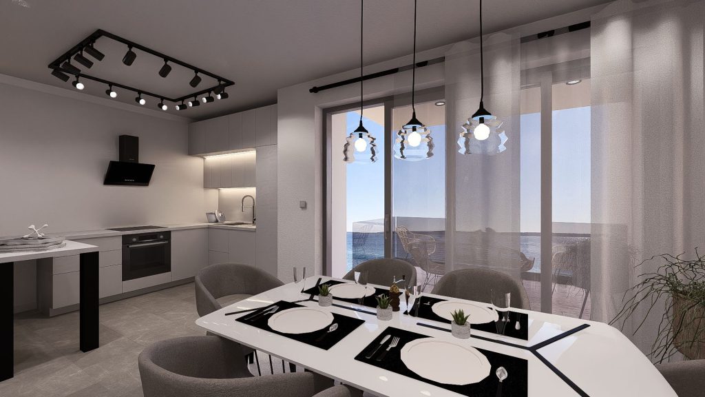 A tengerparttól mindössze 10 méterre fekvő ingatlan kivételes életteret kínál zavartalan kilátással és modern építészettel. A mindössze nyolc apartmanból álló új fejlesztés Mandre egyik legkívánatosabb részén kínál magánéletet, luxust és intelligens technológiát.